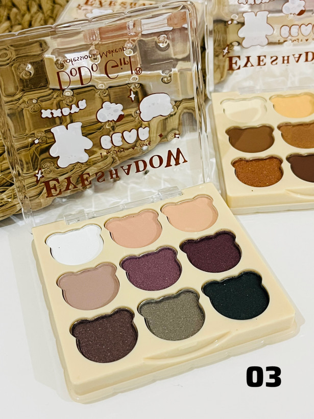 پالت سایه دودوگرل DoDo Girl بافت این نوع سایه بسیار نرم و مخملی بوده و دارای پیگمنت بسیار بالایی است و به راحتی بر روی پلک شما می نشیند و هیچگونه سنگینی بر روی پلک ایجاد نخواهد کرد. رنگهای شاین موجود در این پالت در کنار رنگبندی مات زیبایی بینظیری به آرایش چشم شما میبخشد. ---» این پالت سایه 9 رنگ بسیار کاربردی دارد و مناسب همه ی سلیقه ها هست